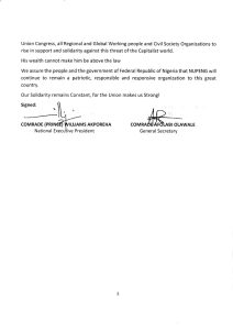 “We assure the people and the government of the Federal Republic of Nigeria that NUPENG will continue to remain a patriotic, responsible, and responsive organization to this great country. Our Solidarity remains Constant, for the Union makes us Strong!”